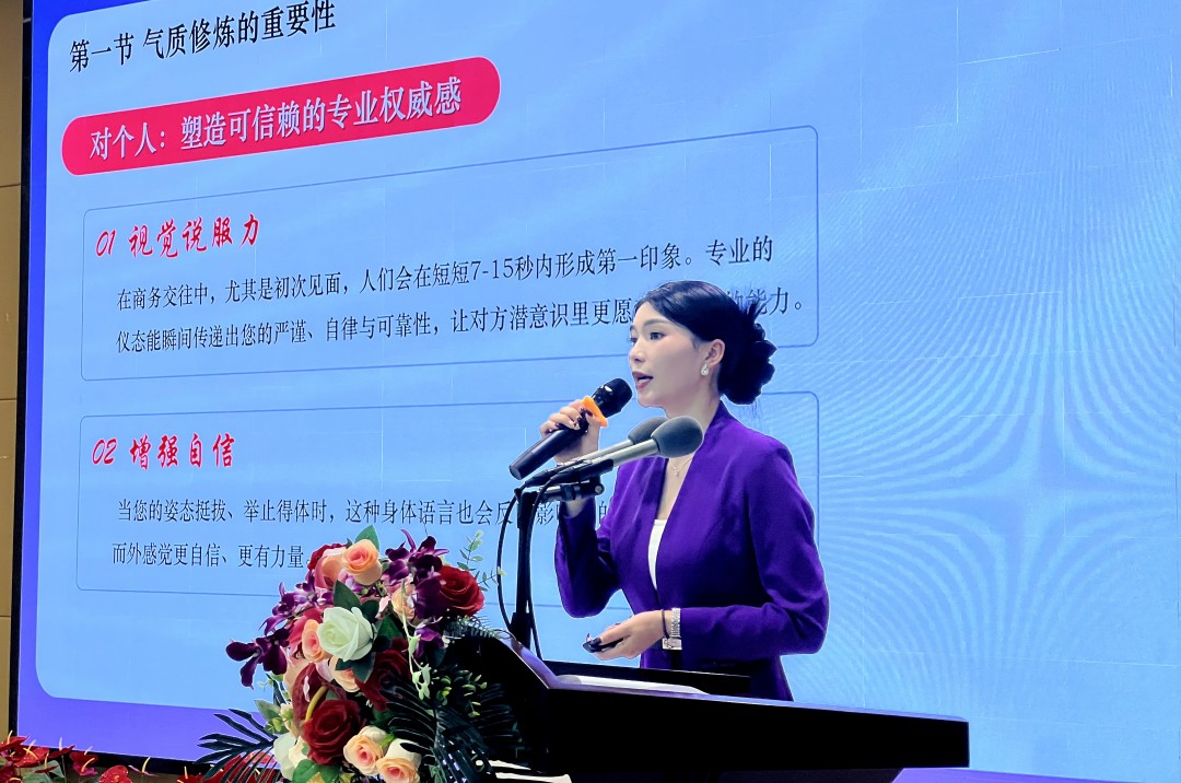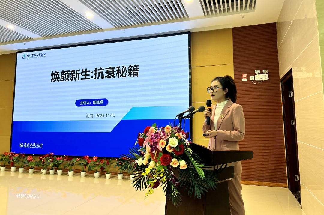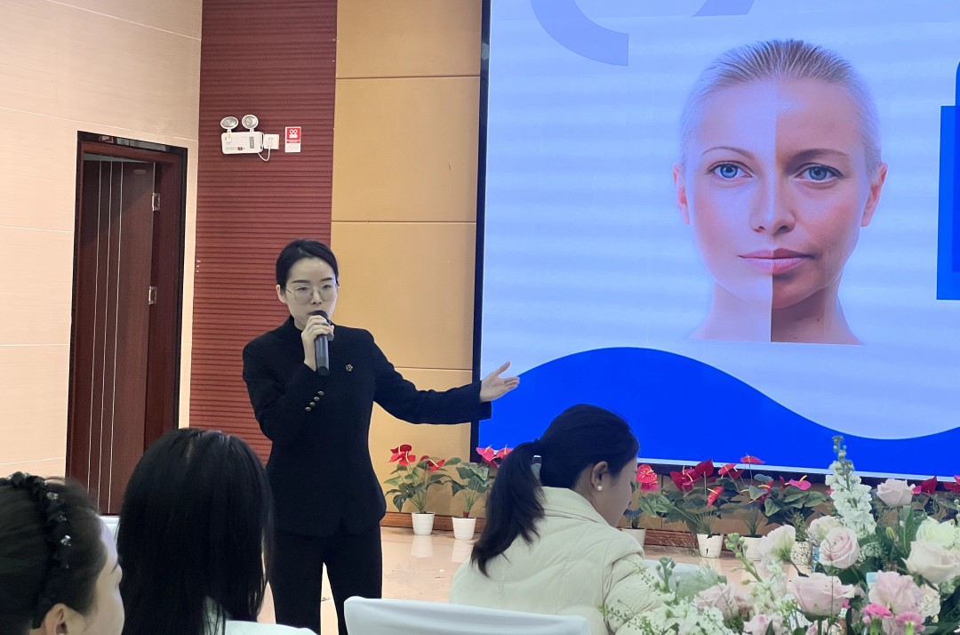 姚露老师带来《以形赋能以仪致胜》的形象礼仪分享,胡静平、甘锁两位老师现场演绎色彩穿搭与职场妆发技巧,卓浪老师的《认识皮肤科学护肤》,和我院医美科胡连娣医生的《科学医美定格青春》则从专业视角,为女性健康美丽提供科学指引。
