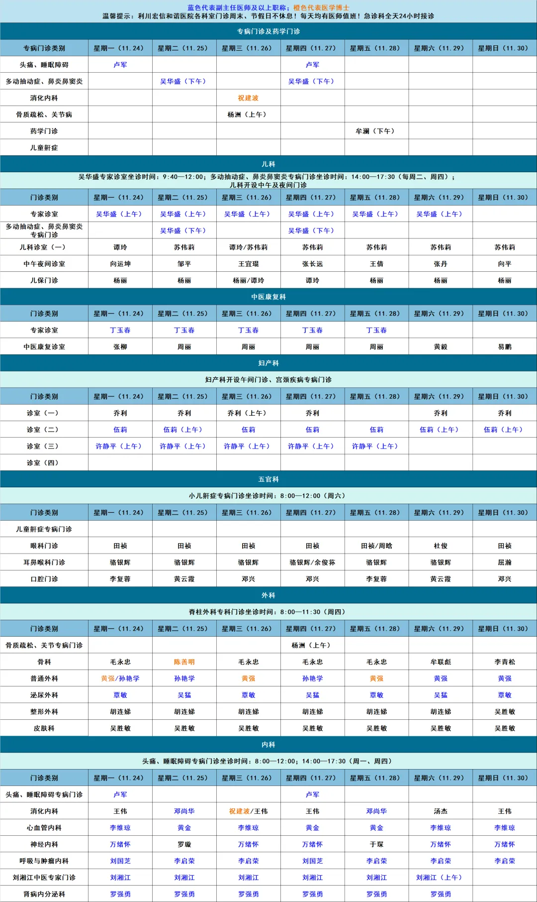 下一条 :【医讯】11月17日—11月23日利川宏信和谐医院门诊坐诊信息一览